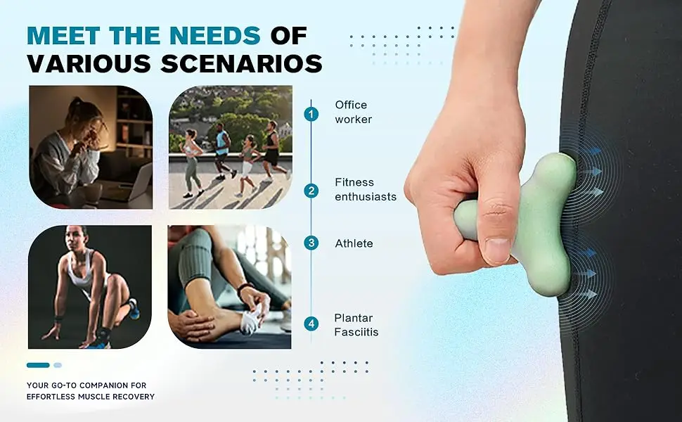 3.【EASY TO USE】:You can grab item to massage your head, neck, arm and leg, or put item on the wall and lean your body against it to relief your back, you can put item on the chair and put your thigh on, you can leave item on the ground and step on it.