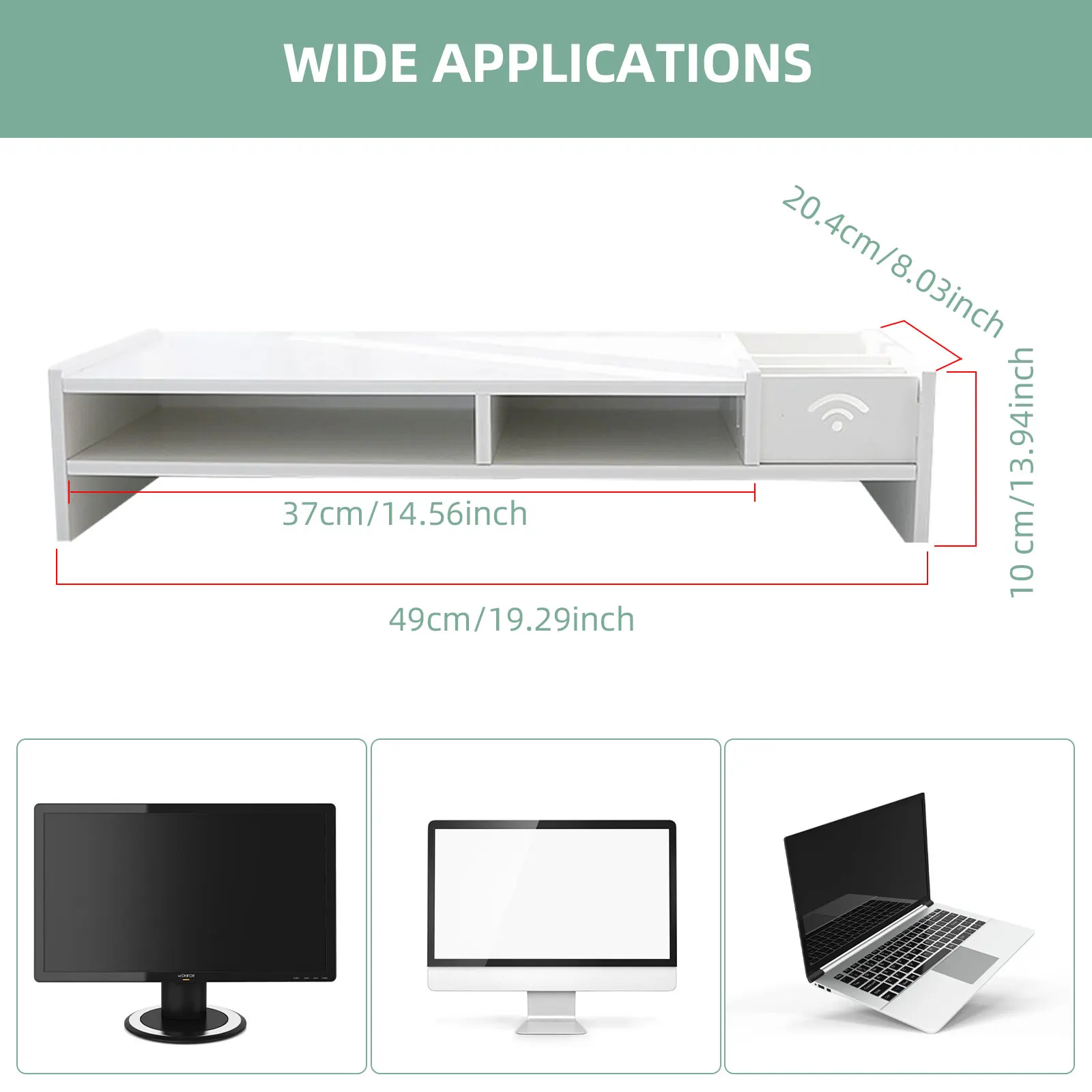 Computer Monitor Stand: Rise your computer monitor, you can watch your PC monitor more comfortably, protect your eyes and cervical vertebra, relieve your body fatigue or soreness after long working hours.