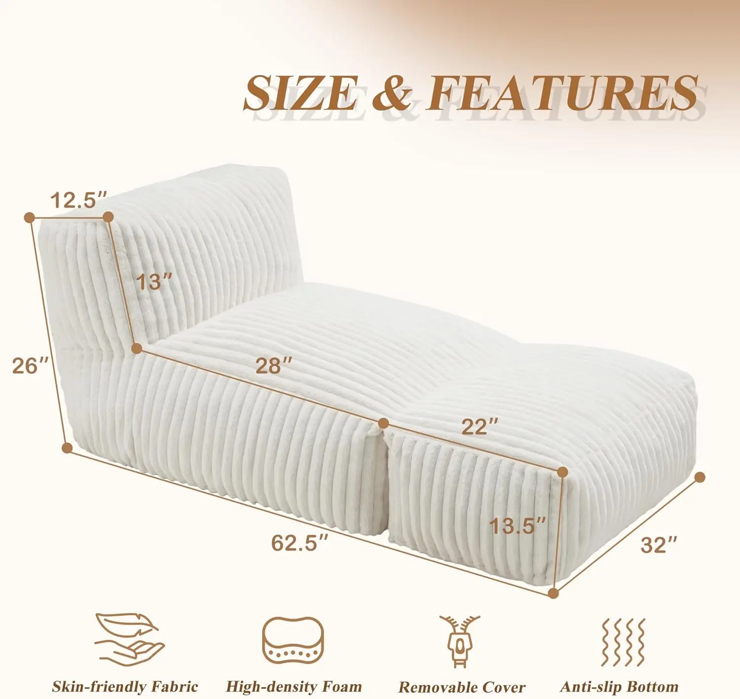 • Soft Fabric: Our bean bag chairs sofa is made of faux fur fabric that is cozy enough. The memory foam is high-density that can provides great support to you. And the cover is easy to remove and can be machine-washable without shrinking.