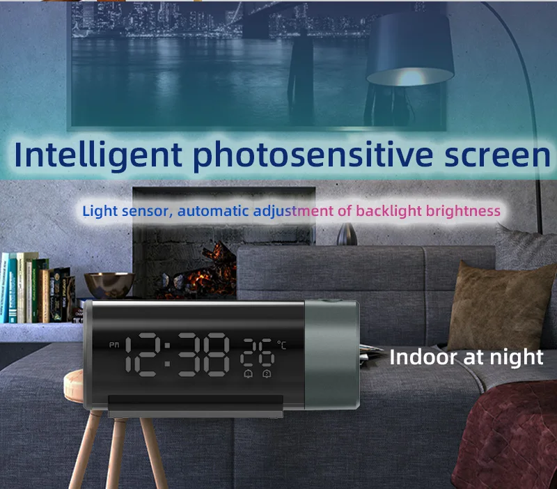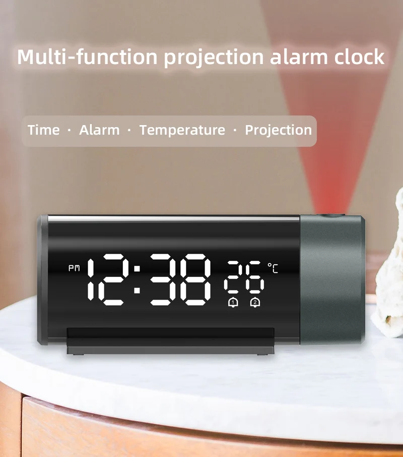 ✔️【180° Adjustable Ultra-Clear Projector】The large screen alarm clock has a 180° adjustable projector on the ceiling or wall. Rotate to the optimal projection distance of 0.5-3m to get a clear projection image, allowing you to read easily even while lying down.