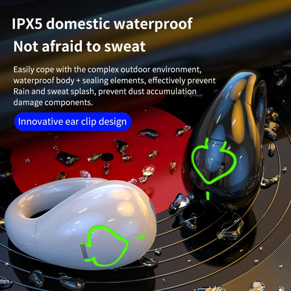 Bone Conduction Wireless Headphones IPX5 Waterproof Single Ear Clip Earphones Bluetooth-Compatible 5.3 Sport Gamer Headset