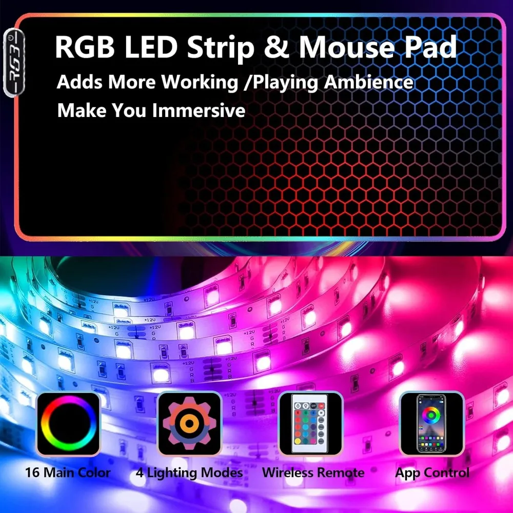 • 【Fully Functional】Our computer desk comes complete with a built-in power socket featuring 2 outlets and 2 USB ports, providing convenient charging for your computer, smartphone, and gaming accessories. What's more, it offers wireless charging for added convenience. This desk also features LED lights and a matching LED mouse pad, delivering an unparalleled gaming experience. Plus, a handy headphone hook keeps your headphones within easy reach. With two cable management holes, you can keep your desk clutter-free.