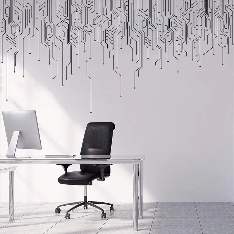 Computer IT Decor,Circuit Board Wall Decal, Technology Vinyl Wall Art Decals, Software Science Wall Sticker Office E755