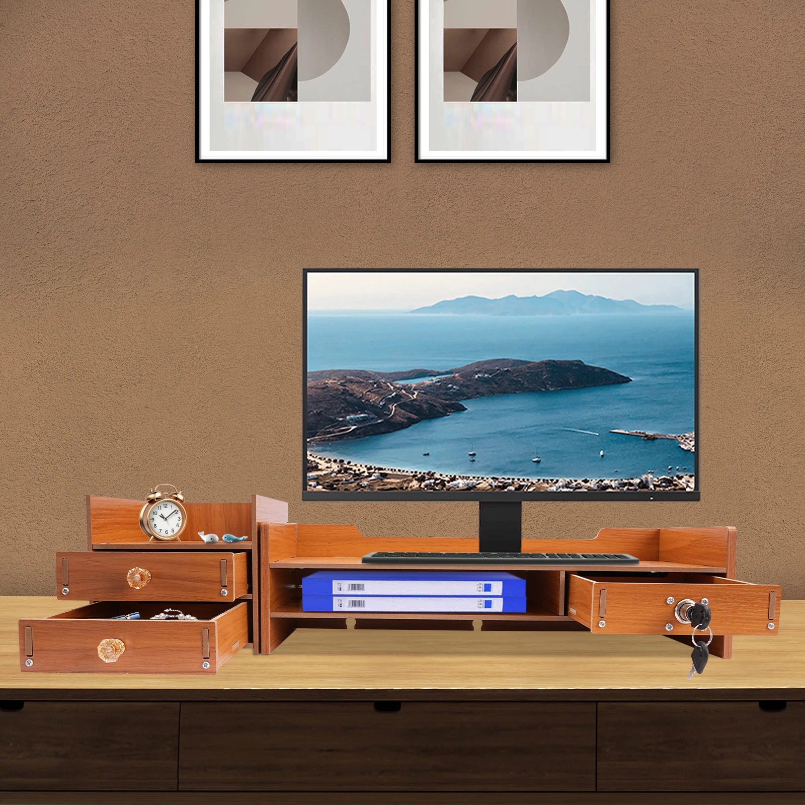 It is suitable for study, office, and desk for storing computer monitors, files, notebooks, and other office supplies.