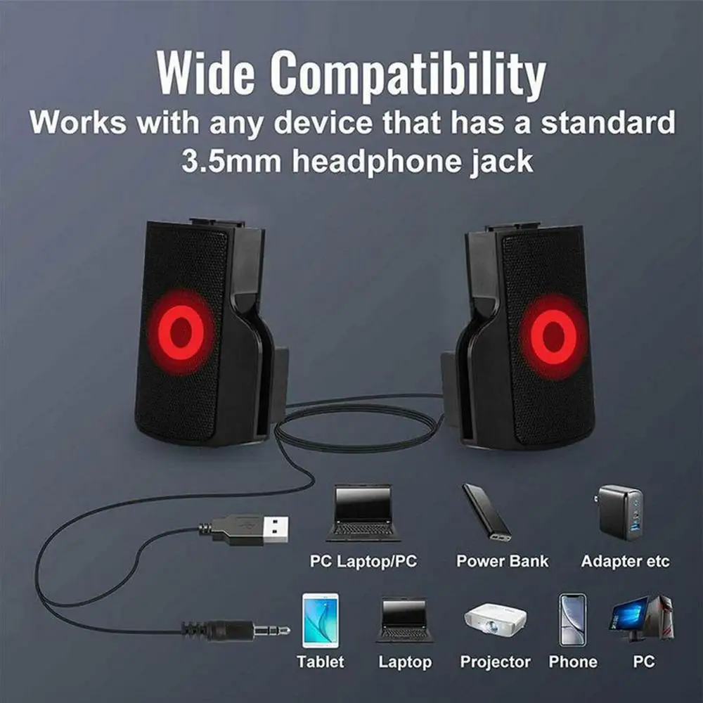 1、【Stereo Speakers】Two mini stereo speakers of the Computer Speakers are very suitable for sound balance and enhancement when admiring music, movies, and computer games, giving you a good sound experience.2、【Antimagnetic Performance】The USB Speaker for Desktop Computers has complete antimagnetic performance and noise suppression function, allowing you to immerse yourself in the shocking stereo sound.