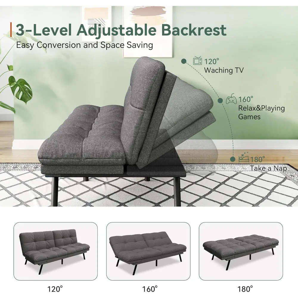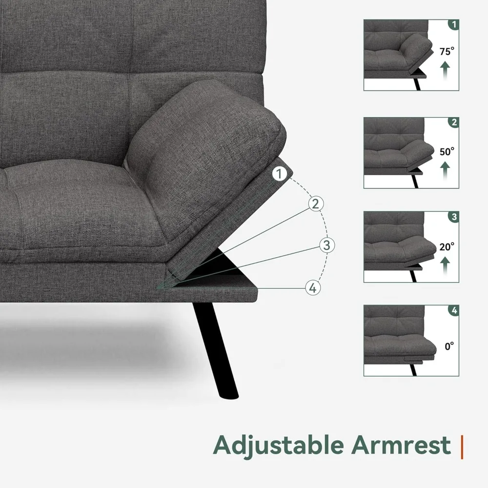 - 【MULTI-FUNCTIONAL ADJUSTMENT】The backrest of the futon sofa bed can be adjusted from 90-180°, the armrests can be adjusted from 135-180°, and the push-pull design makes, the convertible sofa easily become a bed. Let you enjoy meaningful conversations, watch long-awaited events, or even fall asleep peacefully, counting sheep, or become a bed for guests to sleep on.