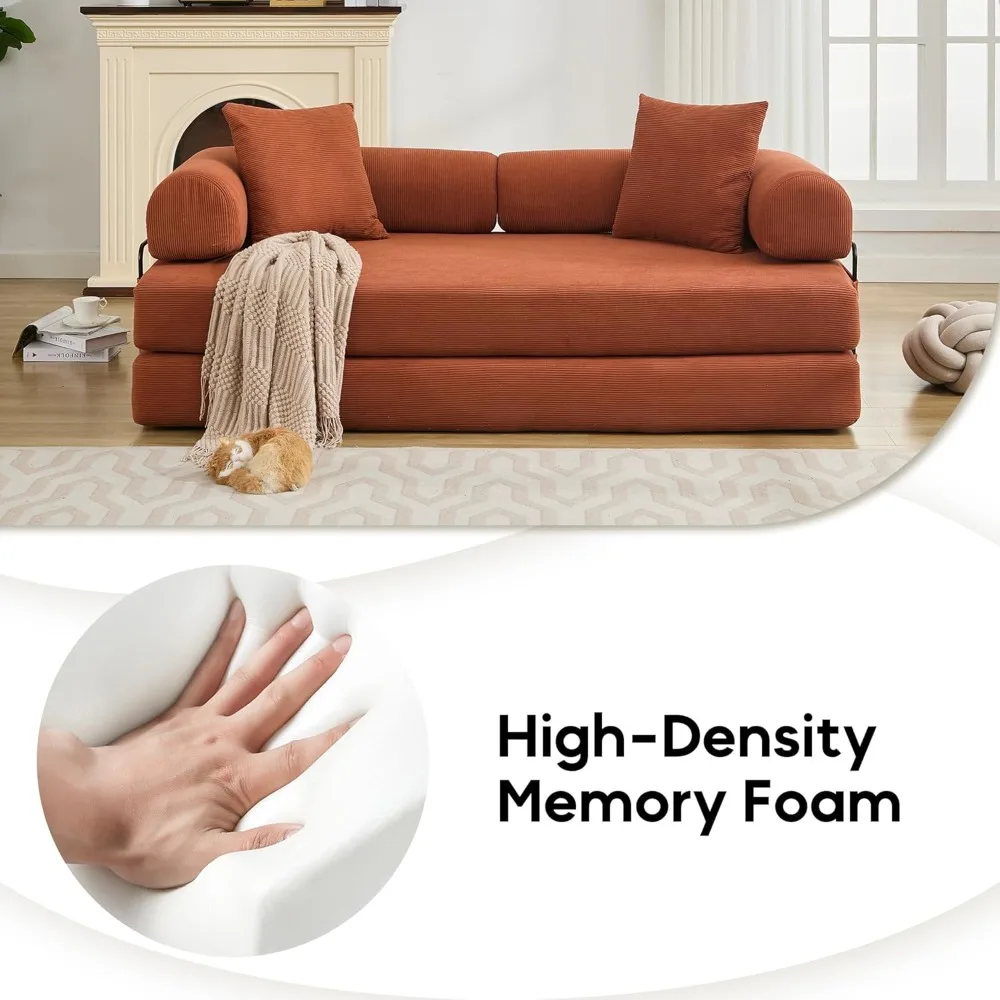 - Premium Comfort: Upholstered in soft, breathable Small Streak Corduroy fabric, this convertible sofa bed features high-density foam that effectively alleviates pressure while providing robust support. The accompanying plush pillows enhance your lounging experience, ensuring relaxation like never before.