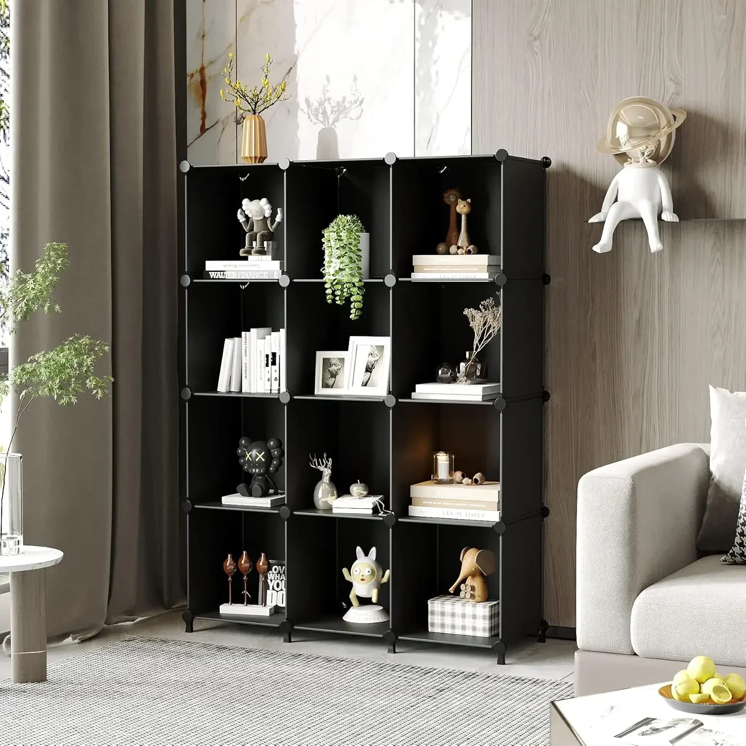 - Large Storage System: Each cube size is 11.8x11.8x11.8 inch, 12 cube storage shelf with enough storage space for you to store books, toys, yarn, shoes, clothes, bags, purse and more everyday things you want to store, a ideal home storage solution for you