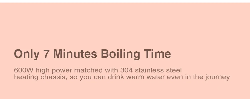 600W high power matched with 304 stainless steel heating chassis, so you can drink warm water even in the journey