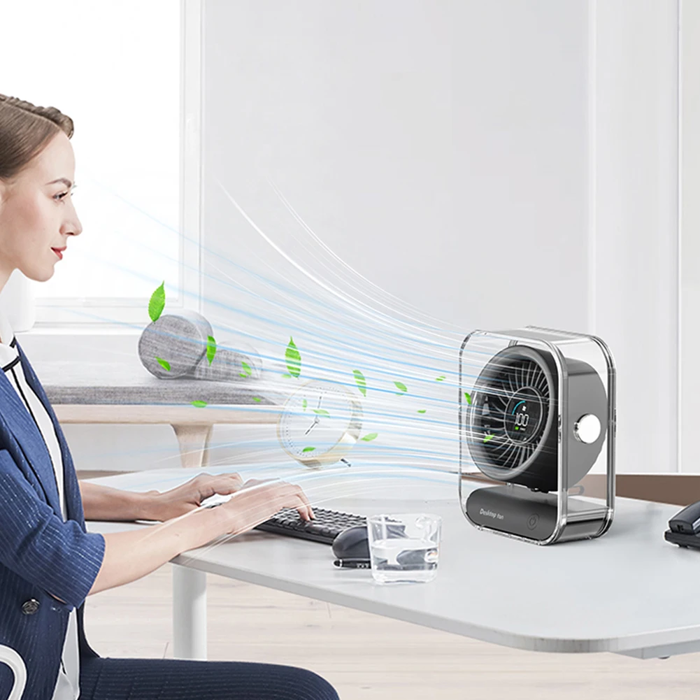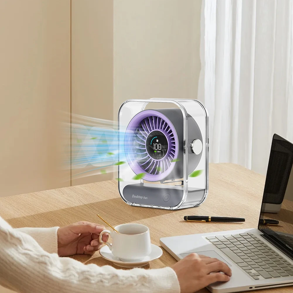 Desk Fan Portable Table Desktop Air Circulator Fan LED Display Small Table Fan Ultra-Quiet Fans Air Circulator Fan for Cooling Home Dorm Office Bedroom