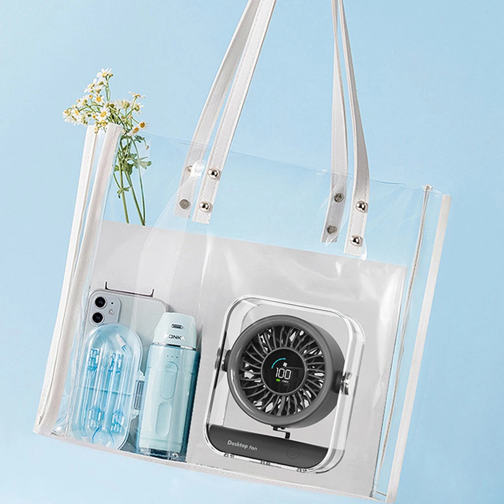 Feature: 1.LED Display Screen: Equipped with an intelligent LED display, this Portable Table Desktop Air Circulator Fan shows wind speed and battery level, allowing users to easily understand the fan's current working status. 2.Multiple Wind Speed Settings: Offers multiple wind speed settings, allowing users to choose the appropriate speed based on their needs, meeting different environmental and personal comfort demands. 3.Low Noise Design: With a new generation brushless motor controlling pressure and steady current, it provides powerful airflow. The double-layer air guide grille design ensures finer and gentler wind cuts, achieving low noise performance. 4.Ultra Wide-Angle Airflow: Supports 30° rotation up and down, providing ultra-wide-angle airflow with a circular large fan surface air guide structure that delivers refreshing and strong wind. 5.Large Battery Capacity: Built-in 3000mAh rechargeable battery for longer-lasting endurance, offering extended use for devices like Personal Fan. Specification: Origin: Mainland China Material: ABS+PC+electronic components Style: USB plug-in/built-in battery charging optional Input voltage: 5V 2A Battery voltage: 4.2V Power: 4.5W Battery capacity: 3000mAh (18650 battery, only for built-in battery charging) Usage time: Charging time 2.5H, use time 3-7H (only for built-in battery charging) Dimensions: 167.1*139.6*79mm