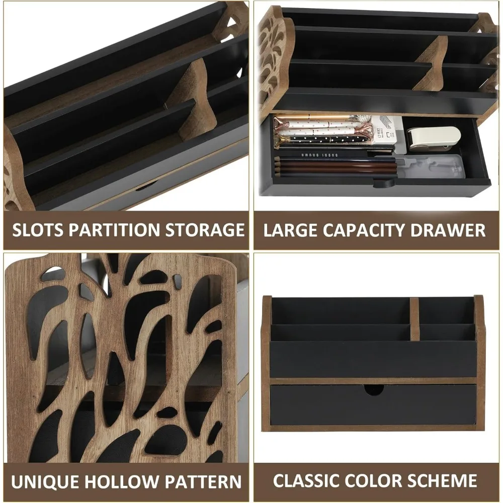 - Stylish Desk Organization:Black and Brown Color Finish and Artistic Cutouts - Elevates home office or vanity table aesthetics. Seamlessly blends with modern farmhouse, industrial, or minimalist styles