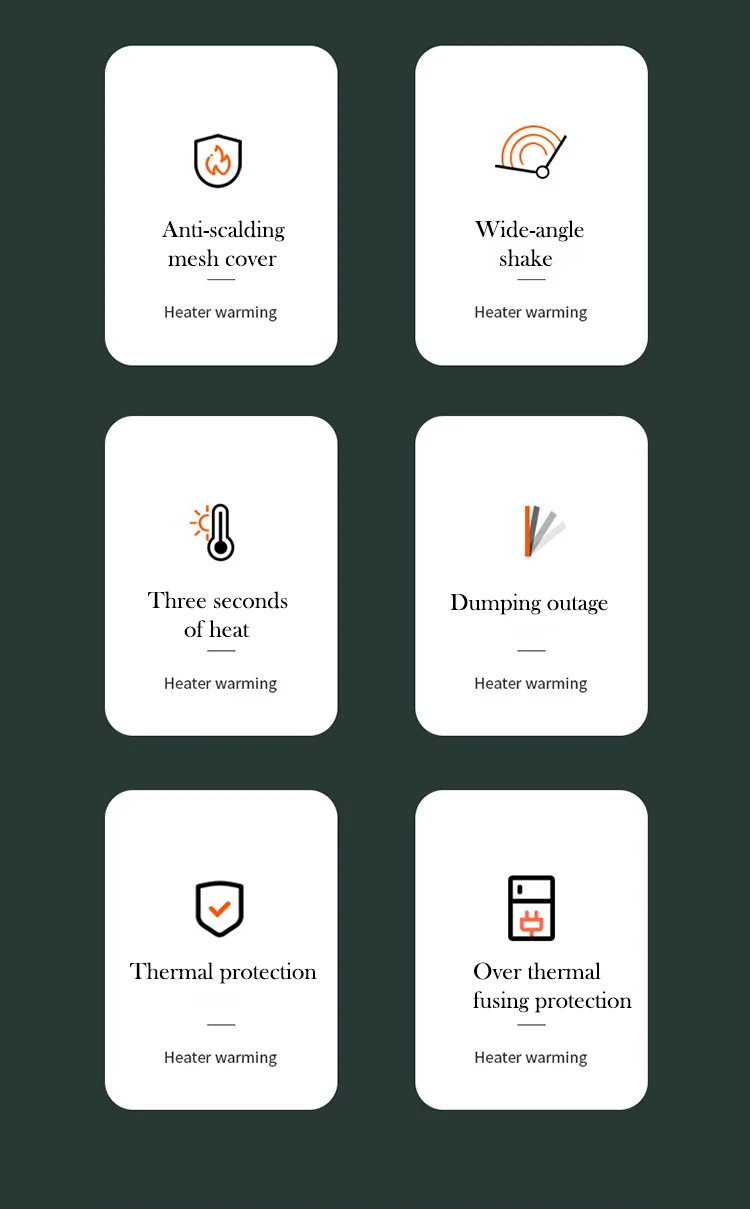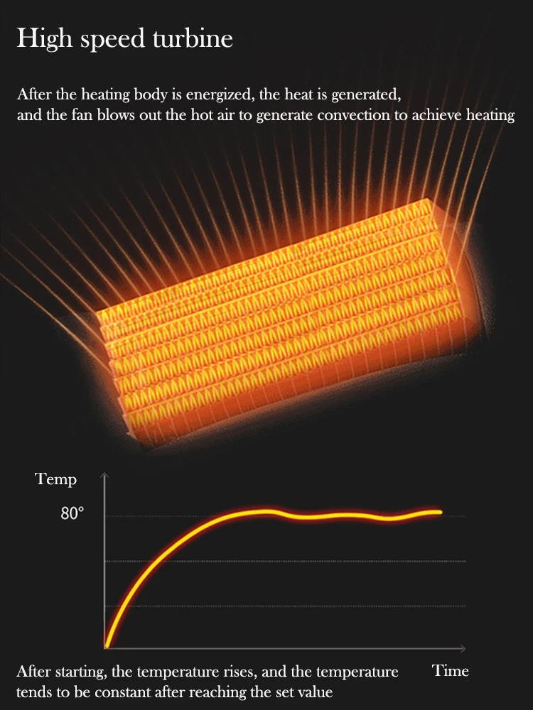 The heater will automatically power off when the temperature exceeds 100°C, about 3 minutes after power off