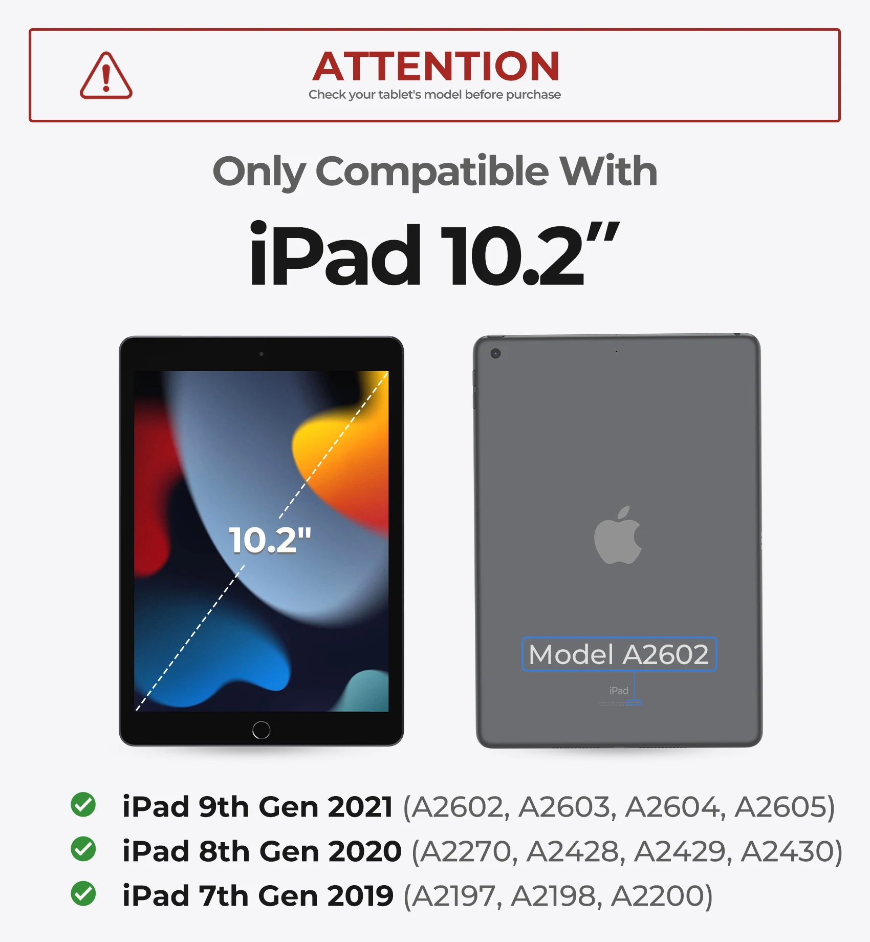 【ENHANCED COMPATIBILITY】Designed exclusively for 10.2 inches iPad 9th Gen 2021(A2602,A2603,A2604,A2605)iPad 8th Gen 2020(A2270,A2428,A2429,A2430iPad 7th Gen 2019 (A2197,A2198,A2200). Please confirm your tablet model before purchase! (Tablet and S Pen not included)