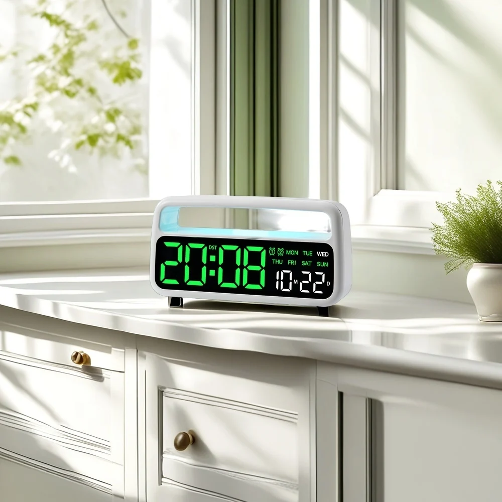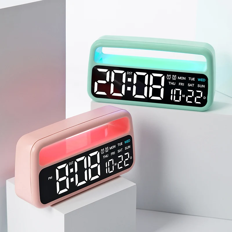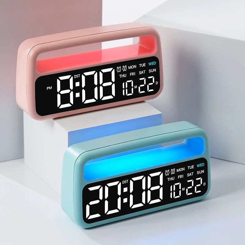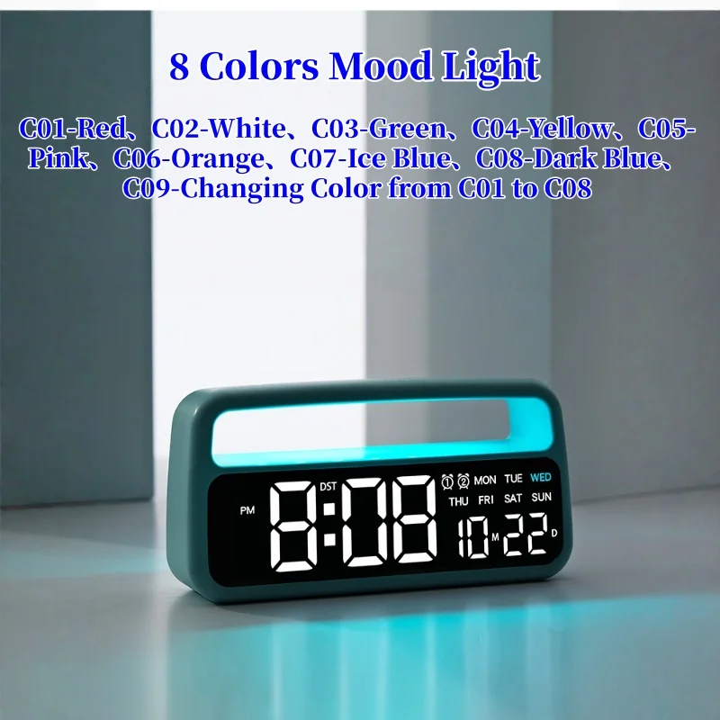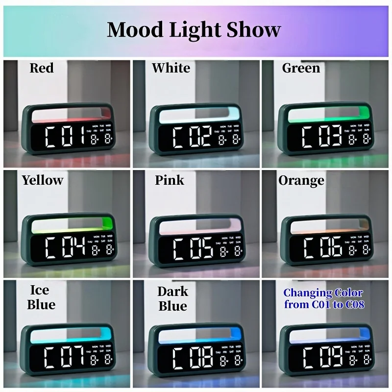 Digital Alarm Clock with 8 Colors Changing Mood Light Date Week DST Snooze Table Clock Auto Dimmable Sleep Mode 12/24H LED Clock