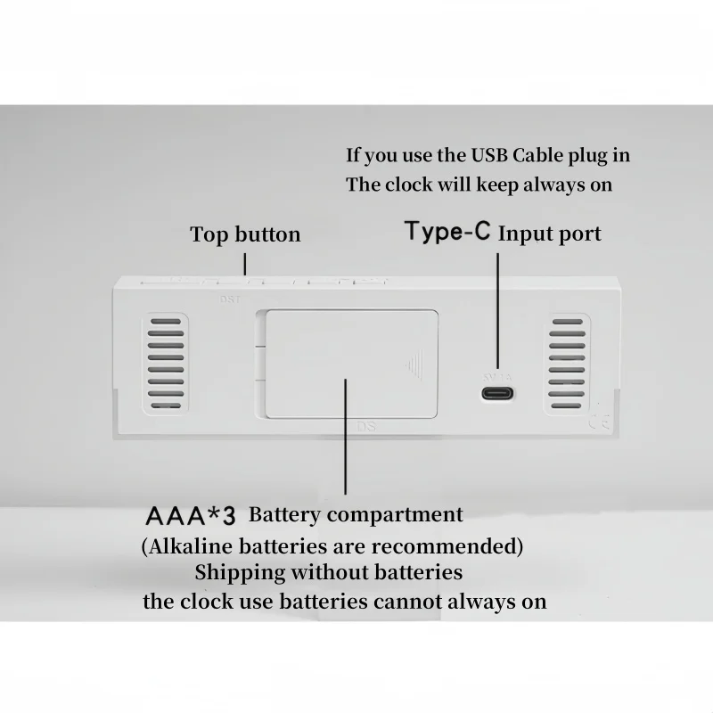 3. If you want to keep the alarm clock on, it is recommended to connect a USB cable