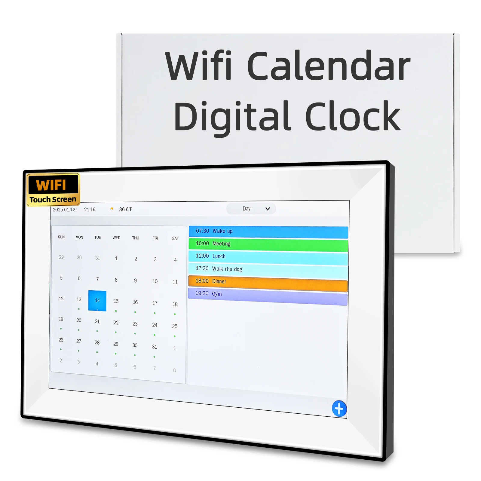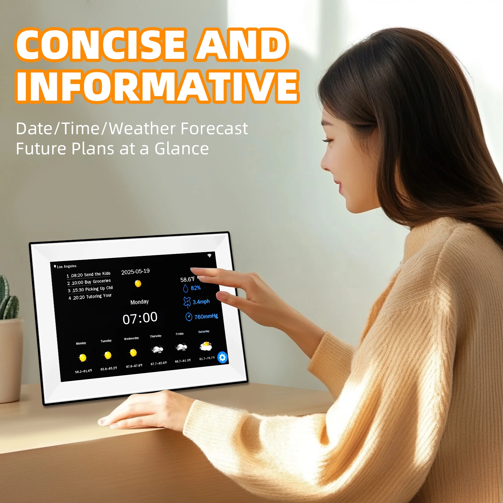 Touch screen digital calendar WIFI weather clock 10.1-inch date, time, temperature and humidity color display alarm clock with remote control weather calendar with memo function