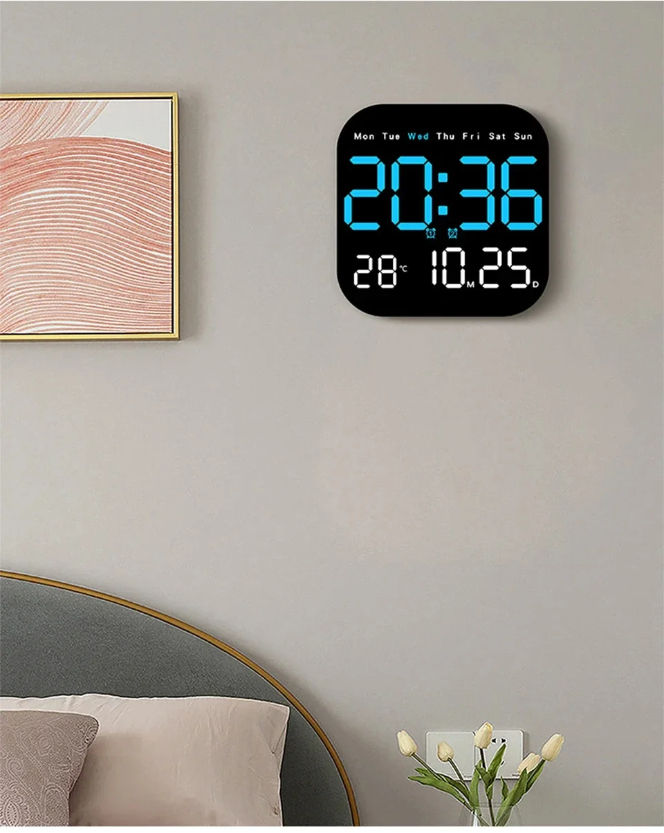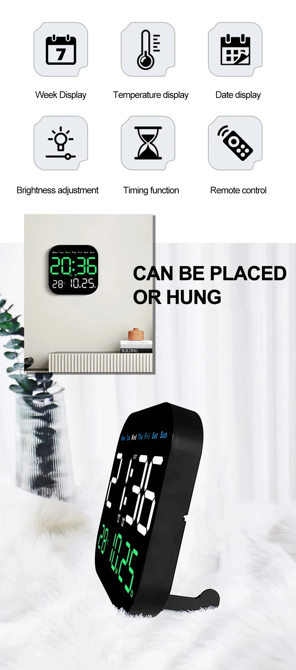Digital Wall Clock LED Alarm Clock Large Display With Timing Function Remote Control Clock for Living Room Office Bedroom Decor