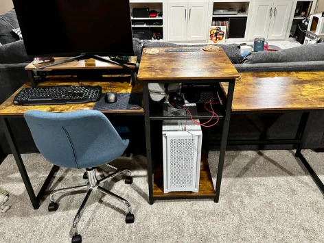 Nice desk for my craft room. Great value for this size desk. Not overly heavy but definitely sturdy enough to hold quite a few items.