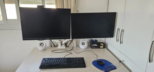 Dual Monitor Mount for 17″–32″ Screens, Adjustable Dual Monitor Stand, with 180° Swivel, Tilt, 360° Rotation for Home Office