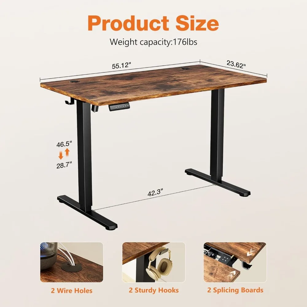 - STURDY & DURABLE - Home office computer standing desk consists of reinforced stainless steel frame, thickened table top and sturdy T-legs, factory tested for 50,000 lifts and the powerful motor lifts the weight up to 176 lbs for two monitors + laptop and more.