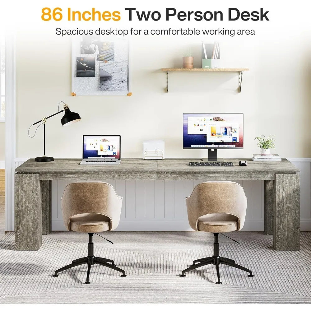 • Extra Long Computer Desk: At an impressive length of 86.61 inches, this double computer desk offers a generous workspace for 2 people. It easily places various essential office materials, ensuring a comfortable and efficient work environment