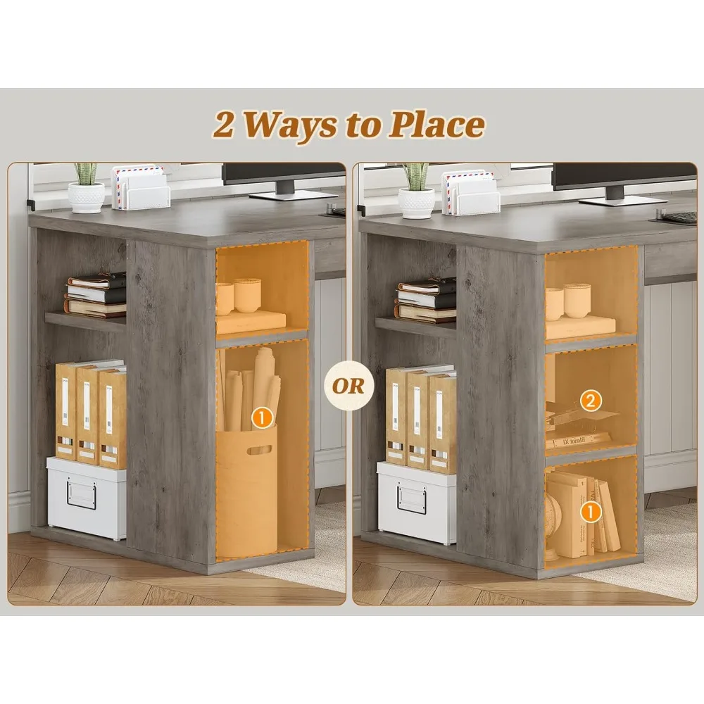 - 【Ample Space】This office desk has a spacious desktop. It features 3 drawers and a 8 open storage cabinet which can accommodate a large number of files, books, and other office essentials. File drawer with full extension slides holds letter or A4 size hanging files. Three additional drawers feature metal runners and safety stops to keep you and your family safe.