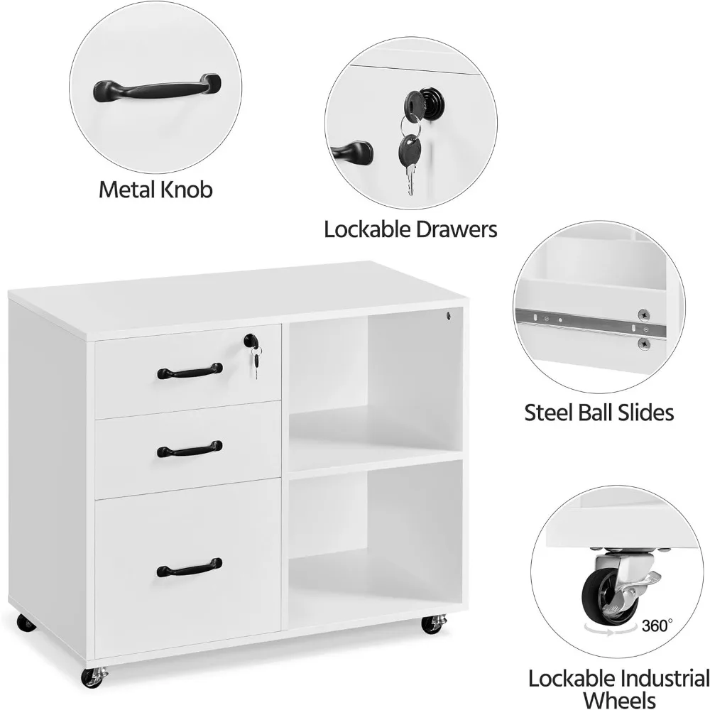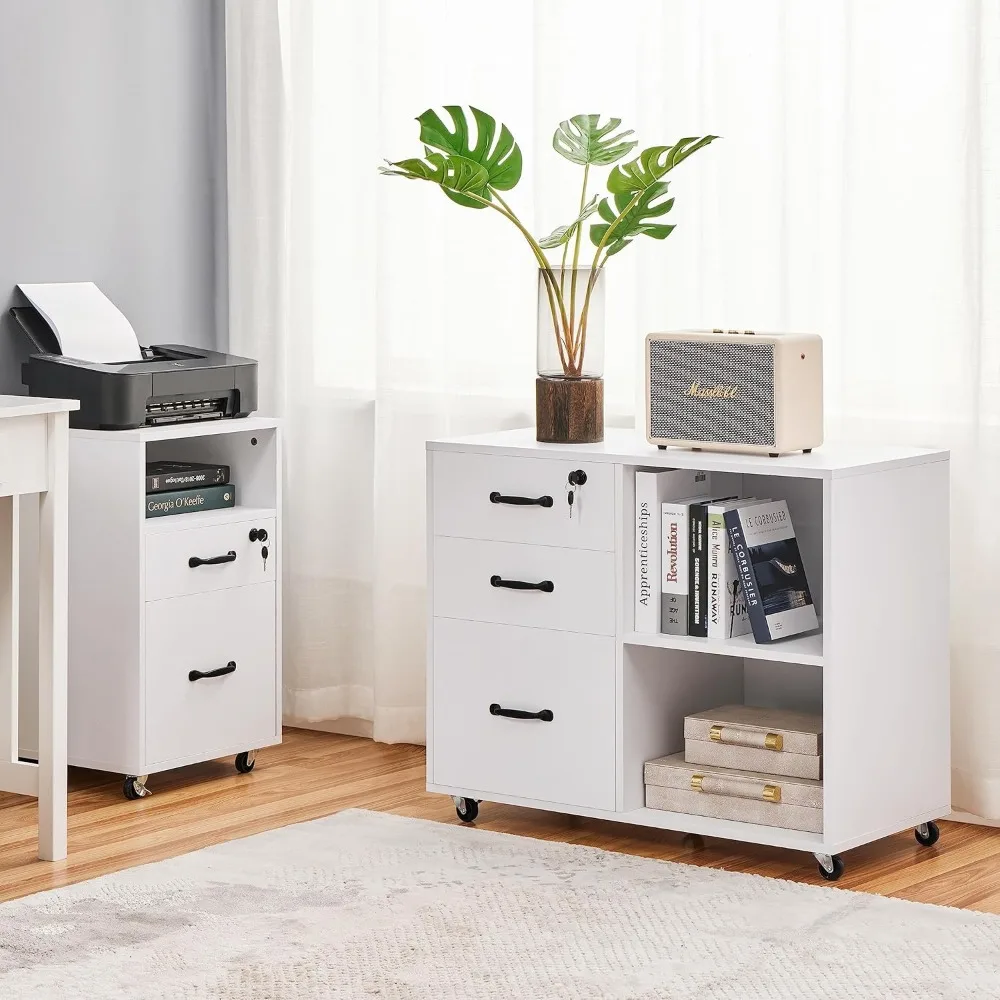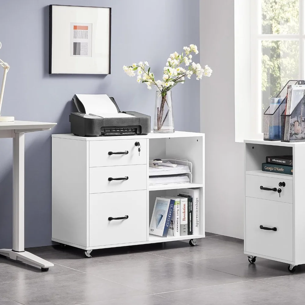 - Industrial-grade Lockable Wheels: 4 smooth wheels are adopted for quiet and flexible movement, 2 of which are lockable, allowing the cabinet to firmly stay in place when needing stationary and serving as a console table or an office filing cabinet