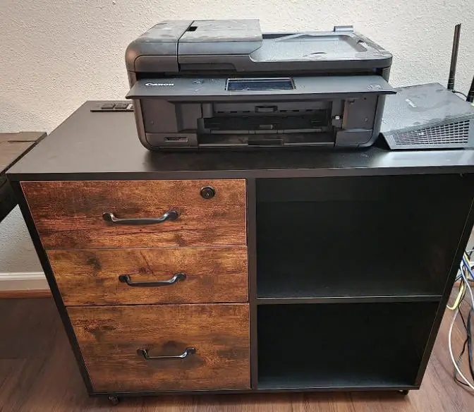 - Robust Printer Stand: Crafted from selected CARB P2 MDF and particle board with a robust structure, this storage chest boasts a great weight capacity: total: 242 lb; top board: 110 lb; shelf: 22 lb, strong enough to hold your printer