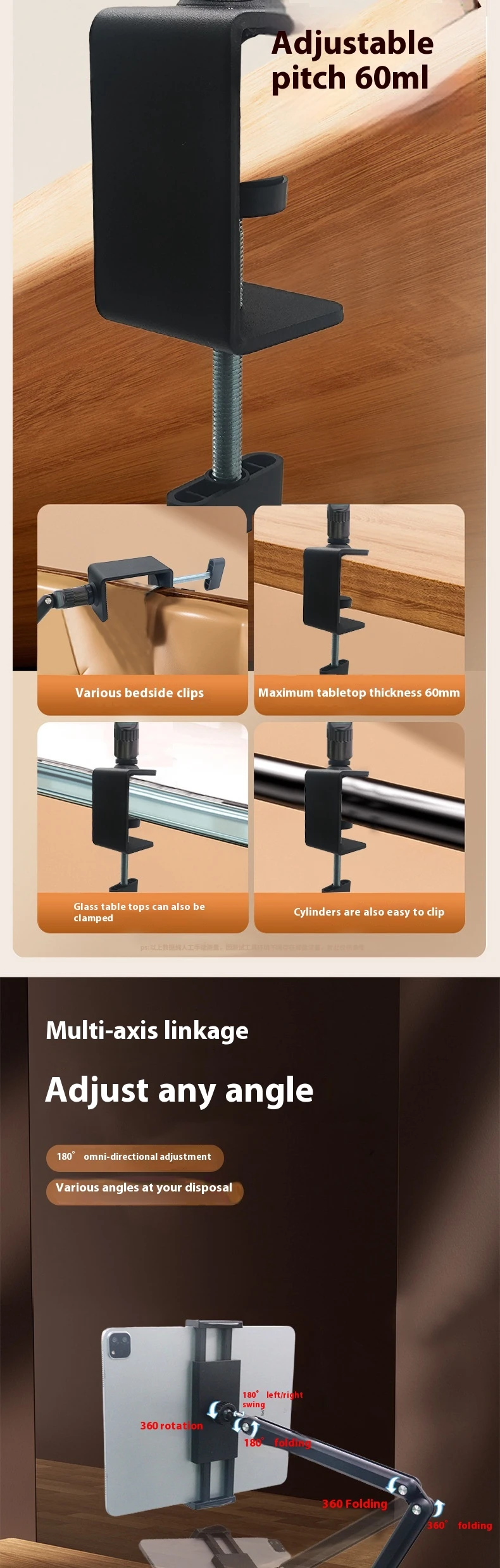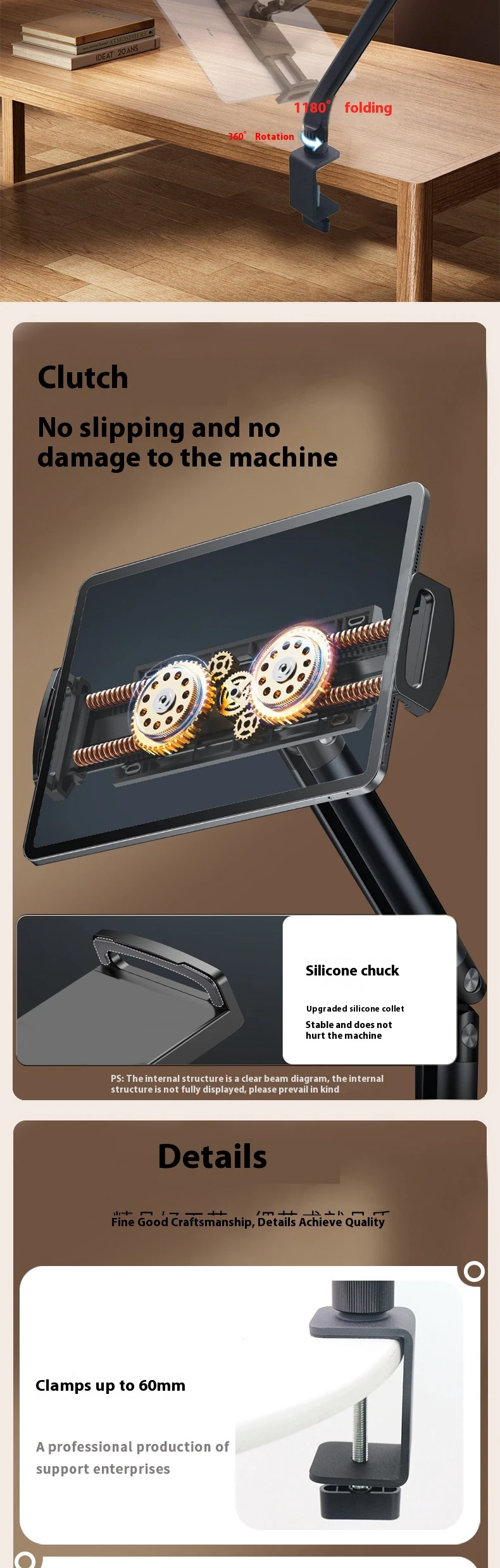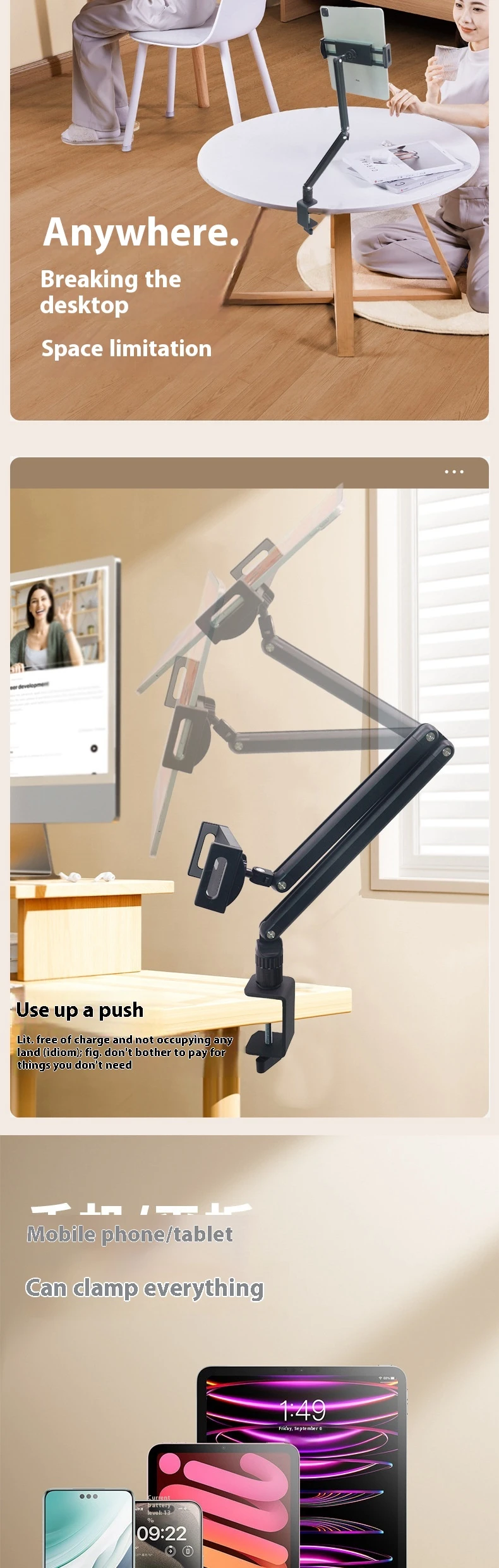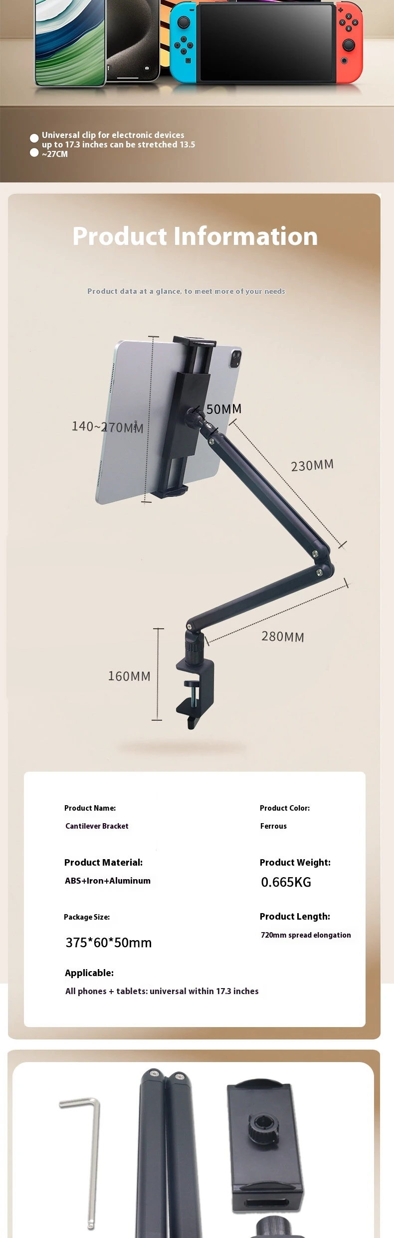 Universal for mobile and tablets up to 17.3 inchesClip thickness up to 600mm