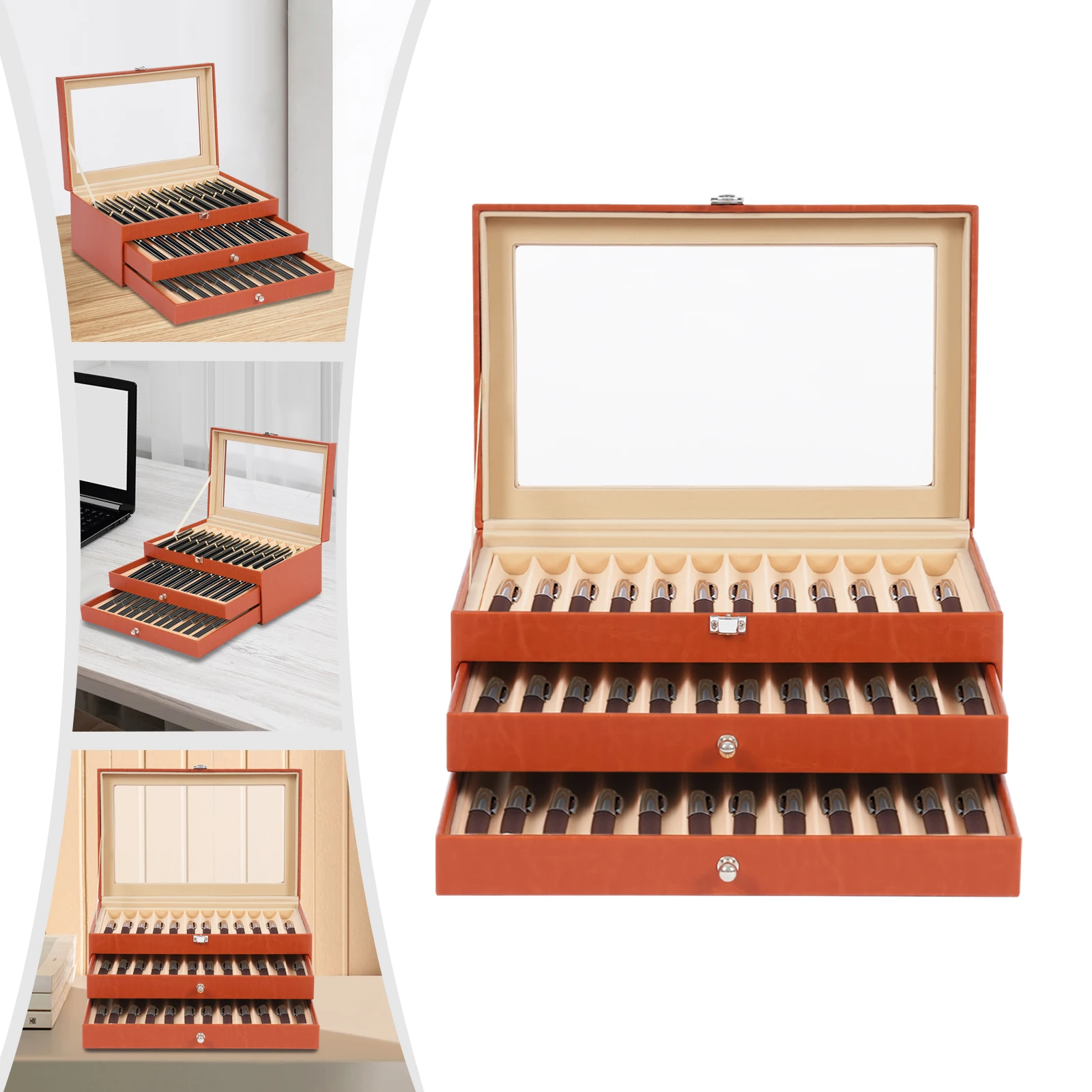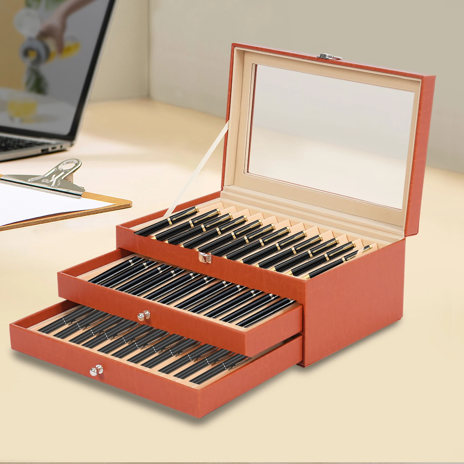 Do you dream of owning a pen house that not only showcases nobility but also protects your beloved collection? Our 36-pen display box features a luxurious PU exterior, exuding an elegant atmosphere. Soft lining gently wraps every precious pen. It's time to give your writing partners their rightful place.