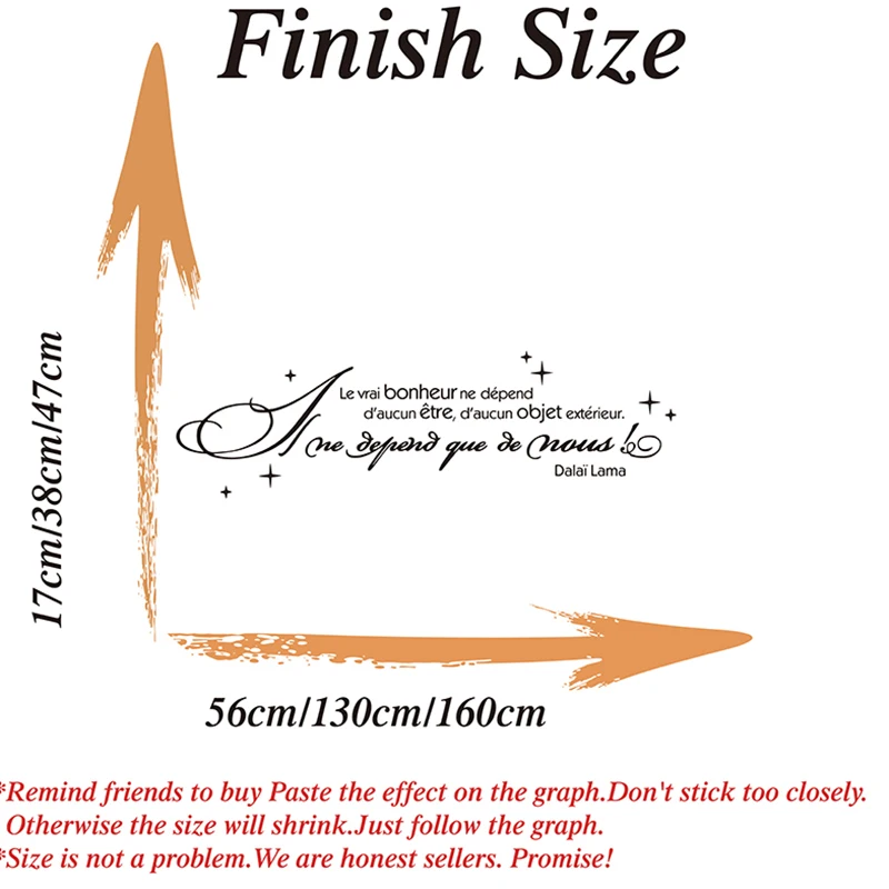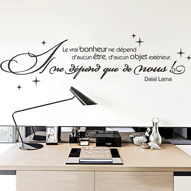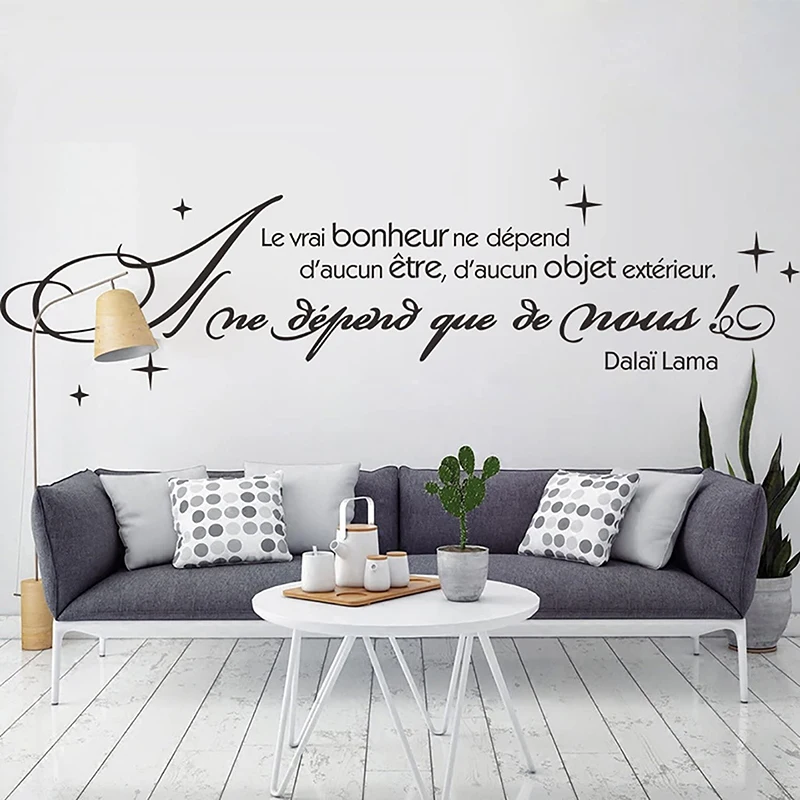 French True Happiness Does Not Depend On Anyting Wall Sticker Living Room Office Inspirational Motivational Quote Wall Decal