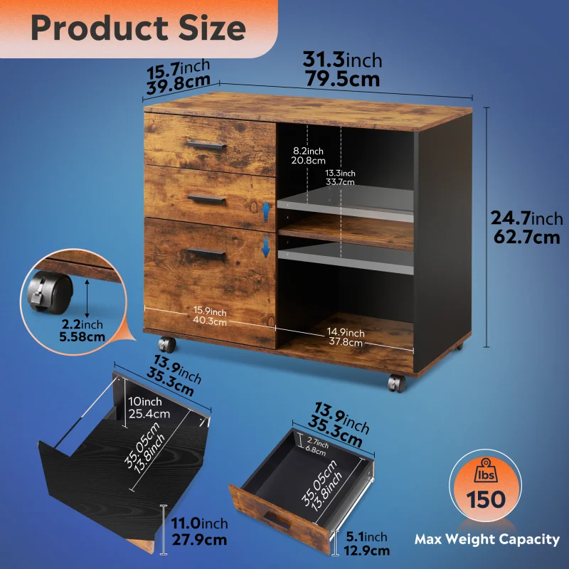 5.Reliable Quality & Easy Assembly:Made from durable materials, this file cabinet supports up to 150 lbs of evenly distributed weight. Dimensions: 31.3"W x 15.7"D x 24.7"H (including wheels). Includes all hardware and step-by-step instructions for fast, tool-assisted setup. Our support team is always ready to assist with any questions.