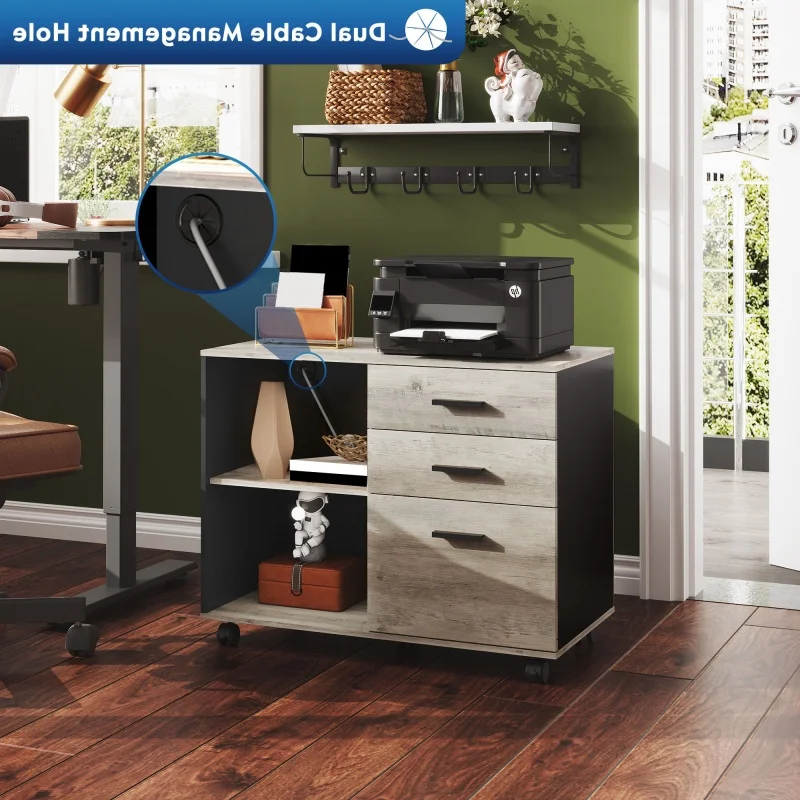 GALAXHERO 3 Drawer Wood Mobile File Cabinet Lateral Filing Cabinet with Printer Stand Open Storage Shelves for Home Office