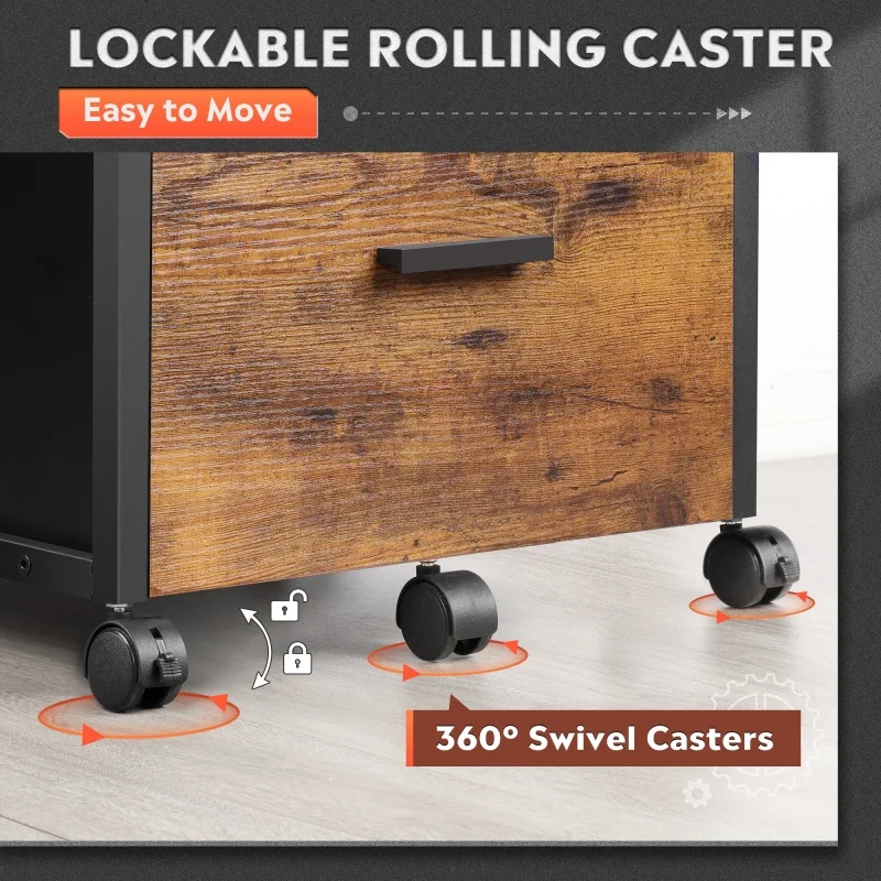 4.Flexible Mobility with Safety:Equipped with 5 rolling casters, including 2 lockable front wheels and a support wheel beneath the bottom drawer, this filing cabinet moves easily and stays stable when needed, preventing tipping even when drawers are fully extended.