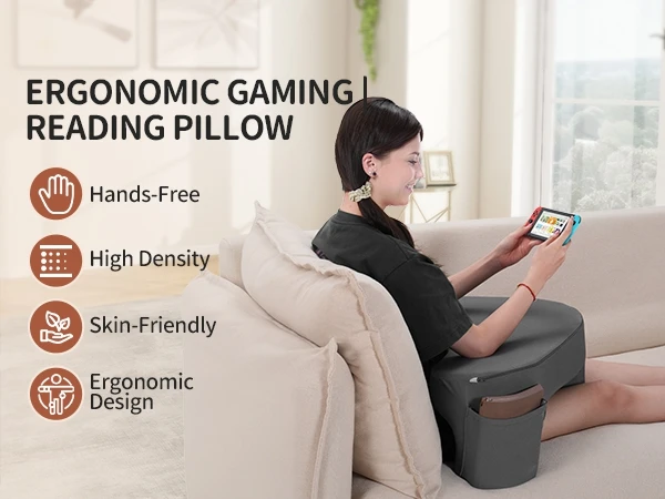 Gaming Reading Pillow Ergonomic Soft Memory Foam 3 Legs Bed Arm Rest Pillow for Couch Car Floor Grey