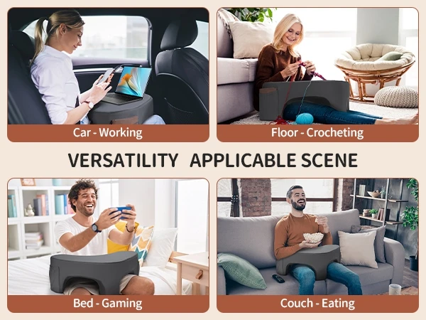 3. Multipurpose Use: This laptop desk pillow can be used on various occasions, including on the bed, sofa, floor, or inside the car. It features a side pocket for convenient storage, not only great for reading and gaming, but also for watching TV, chatting, or simply relaxing.