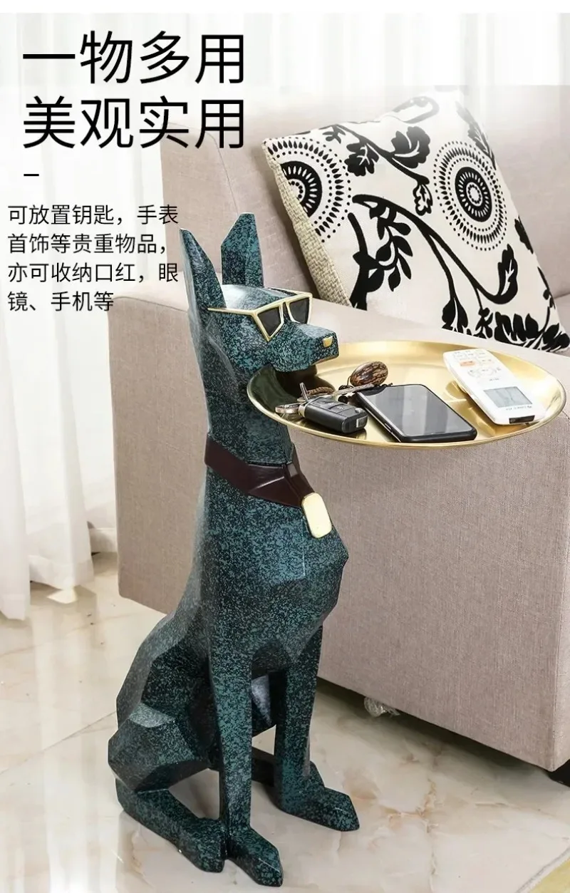 Giant Doberman Figure Side Table Large Dog Statue Plate Doberman Sculptures Luxury Living Room Decoration Home Decor Accessoreis