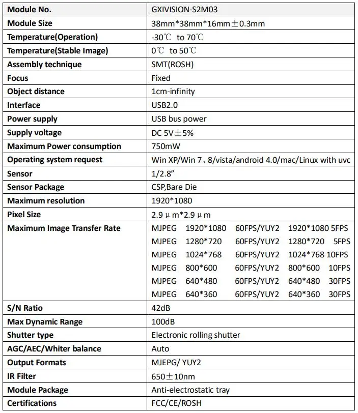 Applications:This tiny 38mmx38mm camera board can be installed in most narrow position, highly recommended for a home video surveillance system, dashcam and other vision applications demand high resolution.