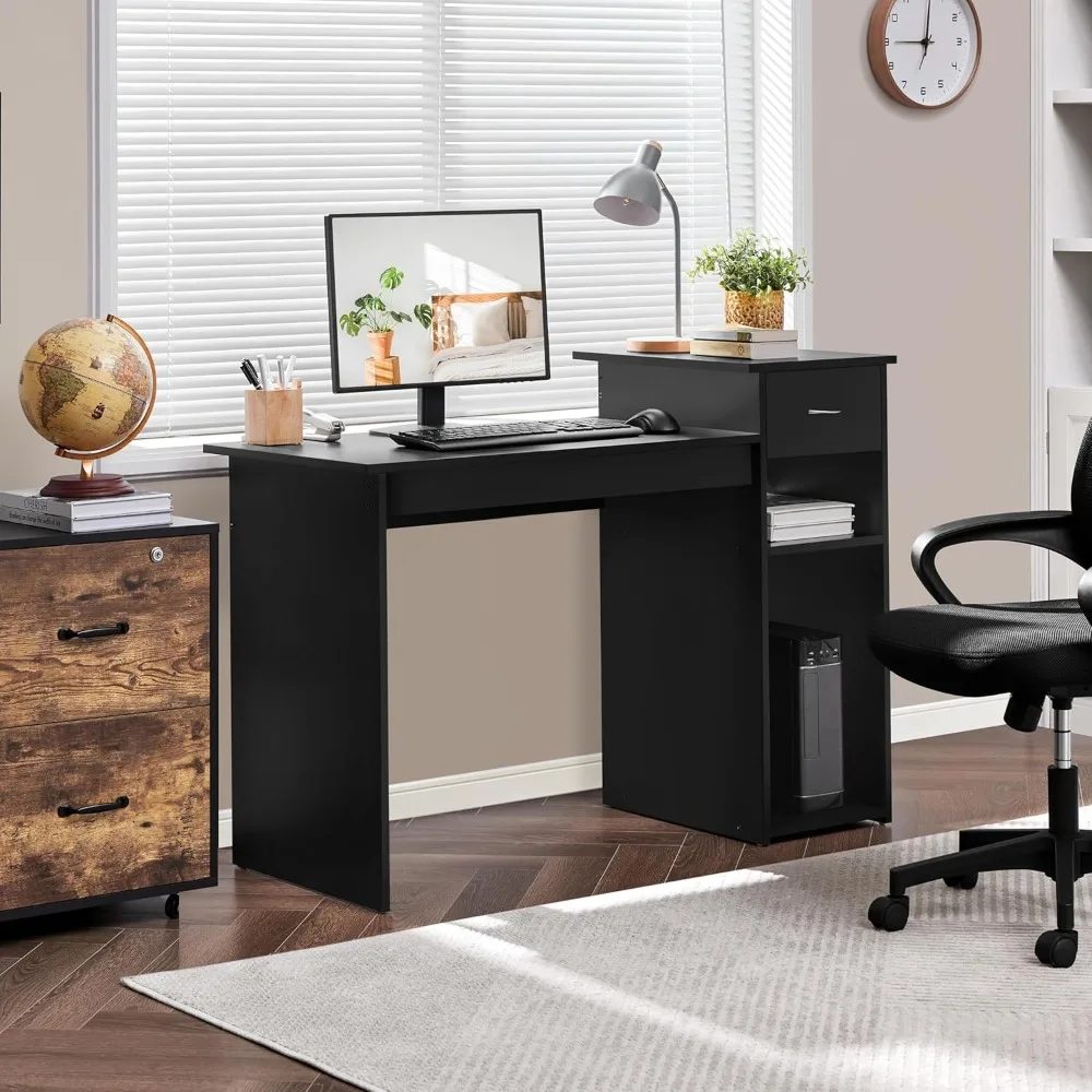 • Functional computer desk: Featuring a spacious tabletop, a smooth-sliding drawer, a CPU stand and a storage shelf, this versatile computer desk can serve perfectly as an office desk, a gaming station in your home office, bedroom and study. It also works great in offices or stores.