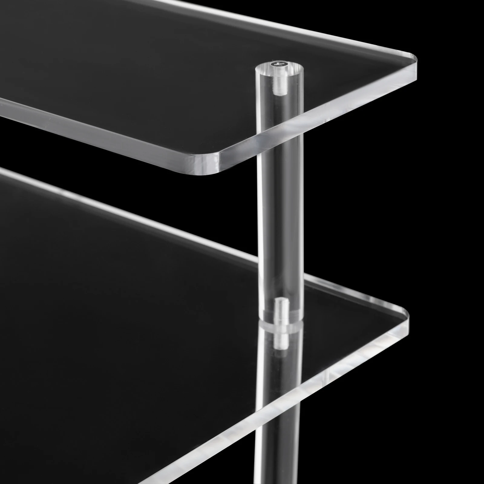 This acrylic desk is made of premium materials and exquisite craftsmanship to ensure its durability. The sturdy connection and solid supports give it a strong load-bearing capacity. The two-tier design provides you with enough space and is more comfortable to use. The overall clear appearance gives it a simple and stylish look, making it not just a practical desk but also a great home decor piece.