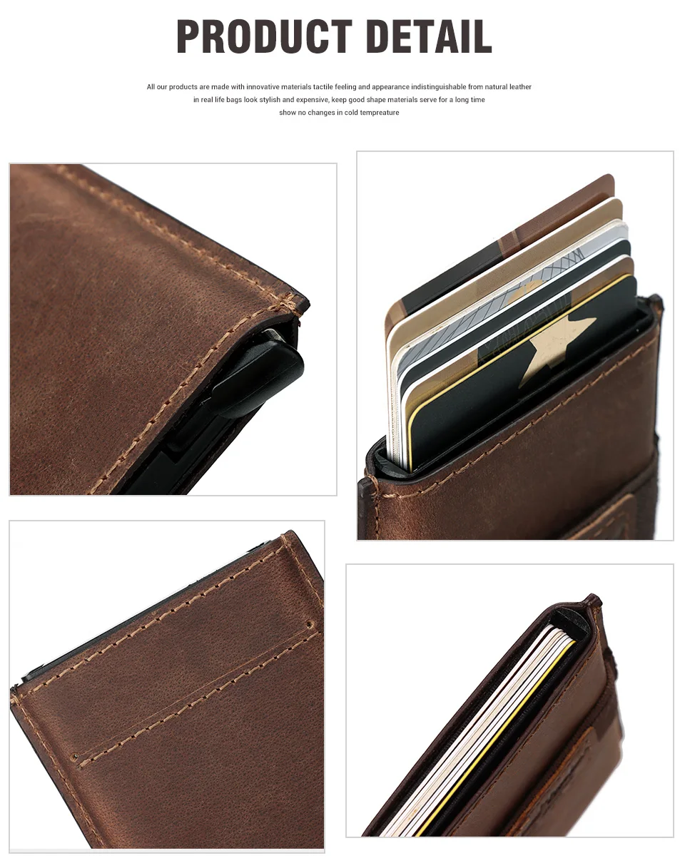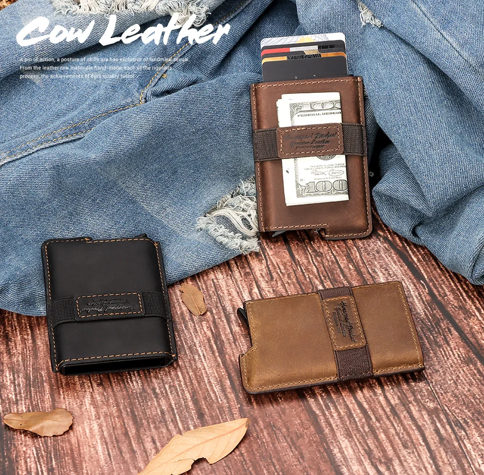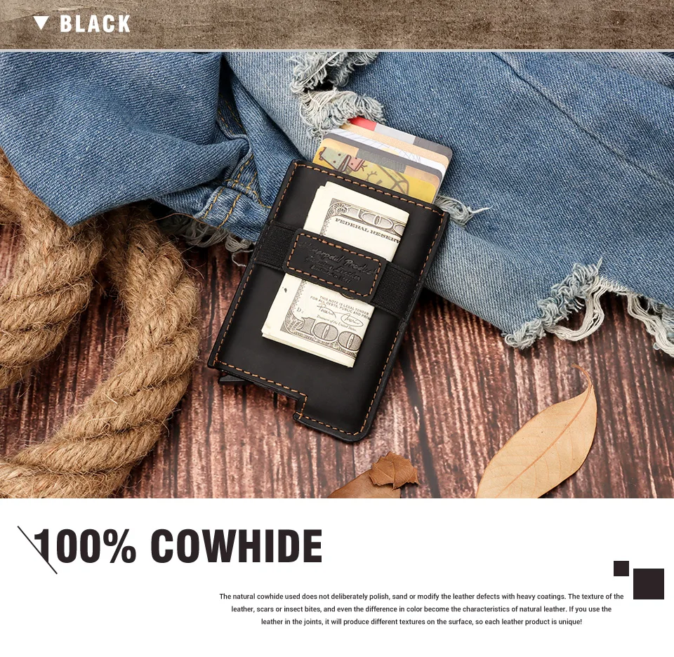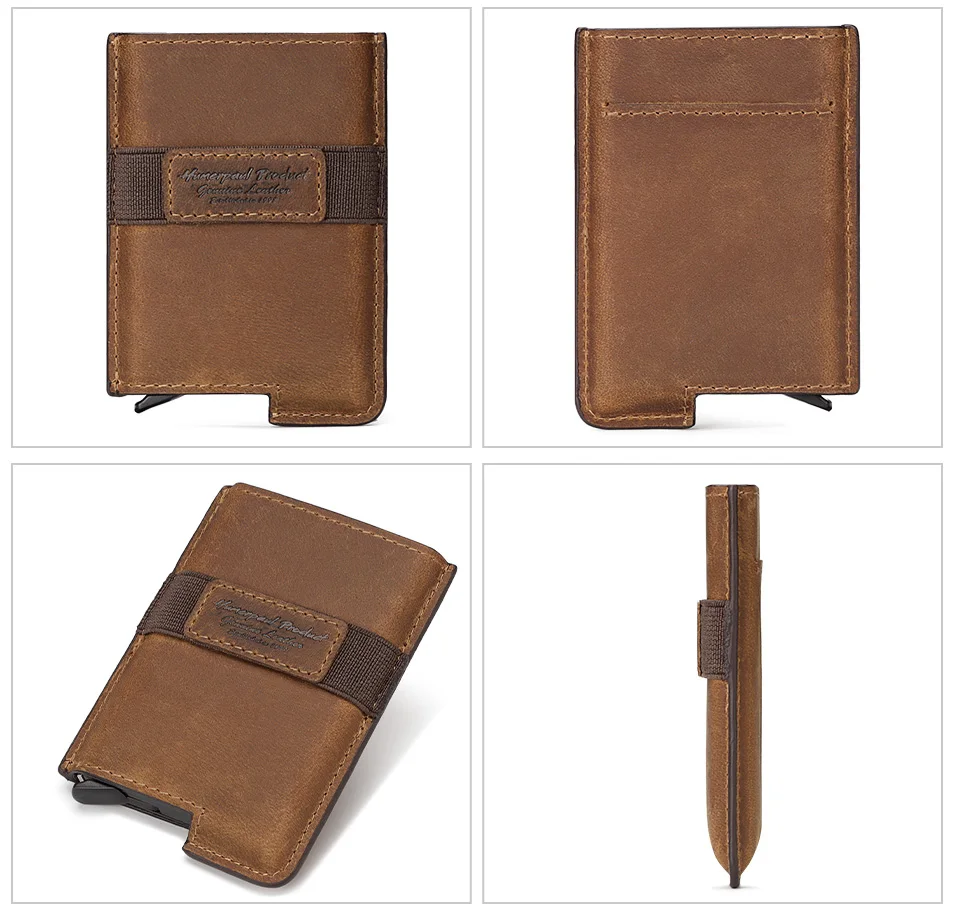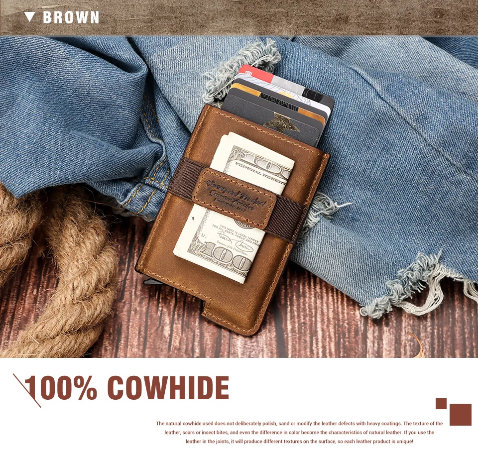 HUMERPAUL Slim Men's Credit Card Holder Wallet Genuine Leather Pop Up Aluminum Card Box RFID Blocking Smart Walets Money Clip