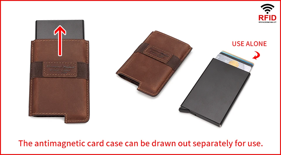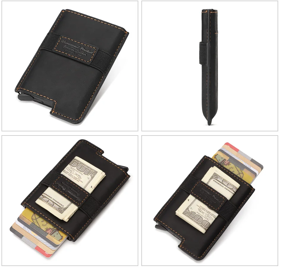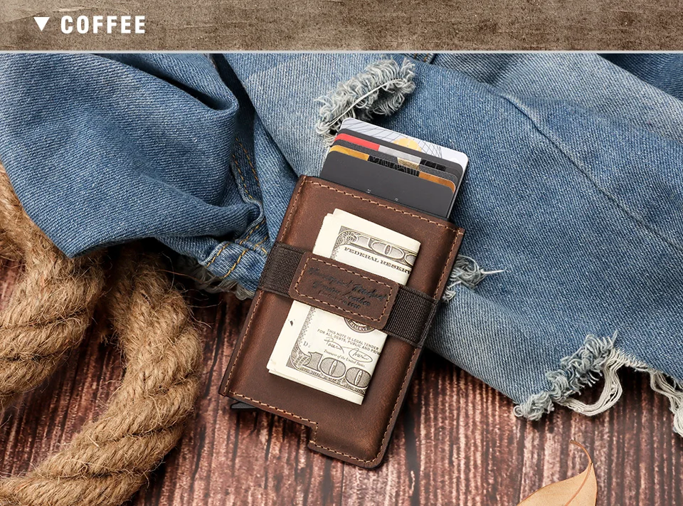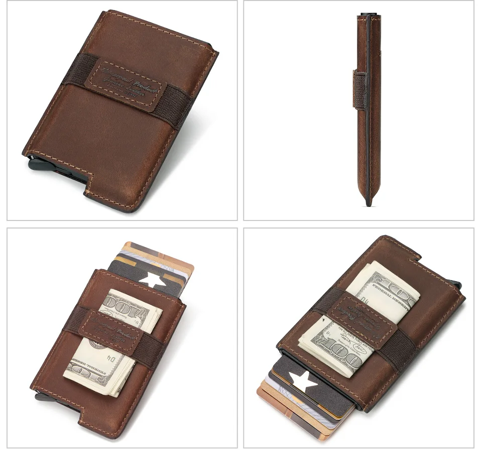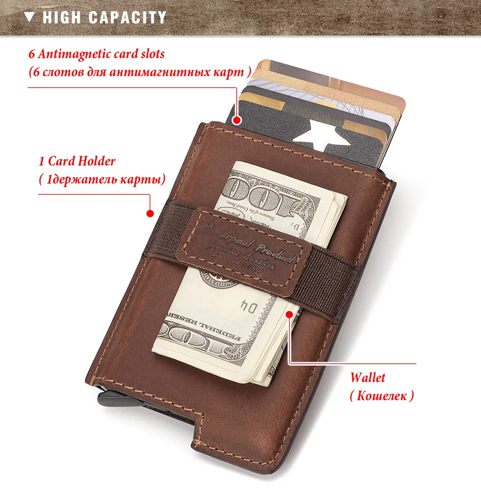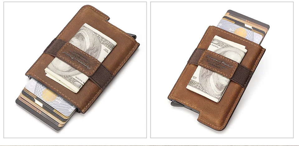 HUMERPAUL Slim Men's Credit Card Holder Wallet Genuine Leather Pop Up Aluminum Card Box RFID Blocking Smart Walets Money Clip
