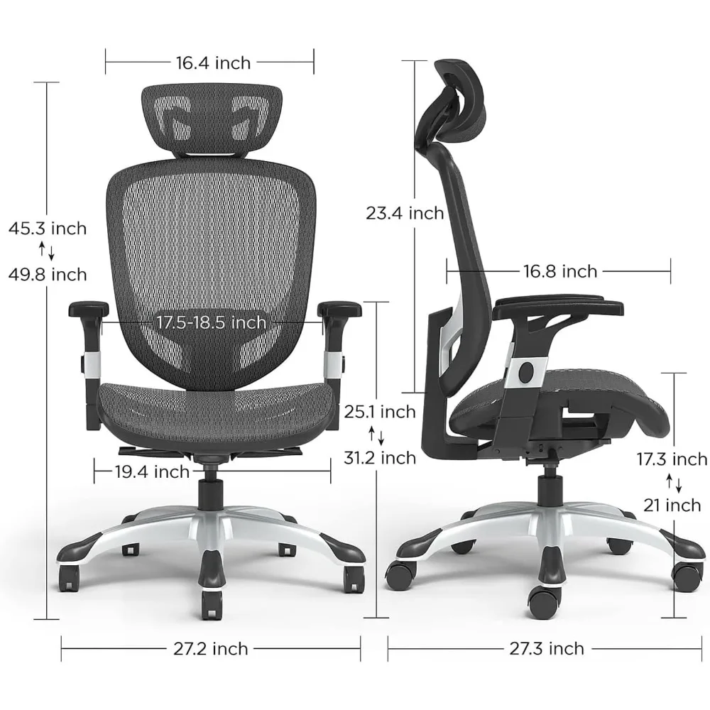 • DIMENSIONS: This mesh task chair measures 45.3" - 49.8" H x 27.2" W x 27.3" D. Designed with sturdy carpet casters, this executive office chair can support up to 250 pounds over a full workday and easily roll across your office floor
