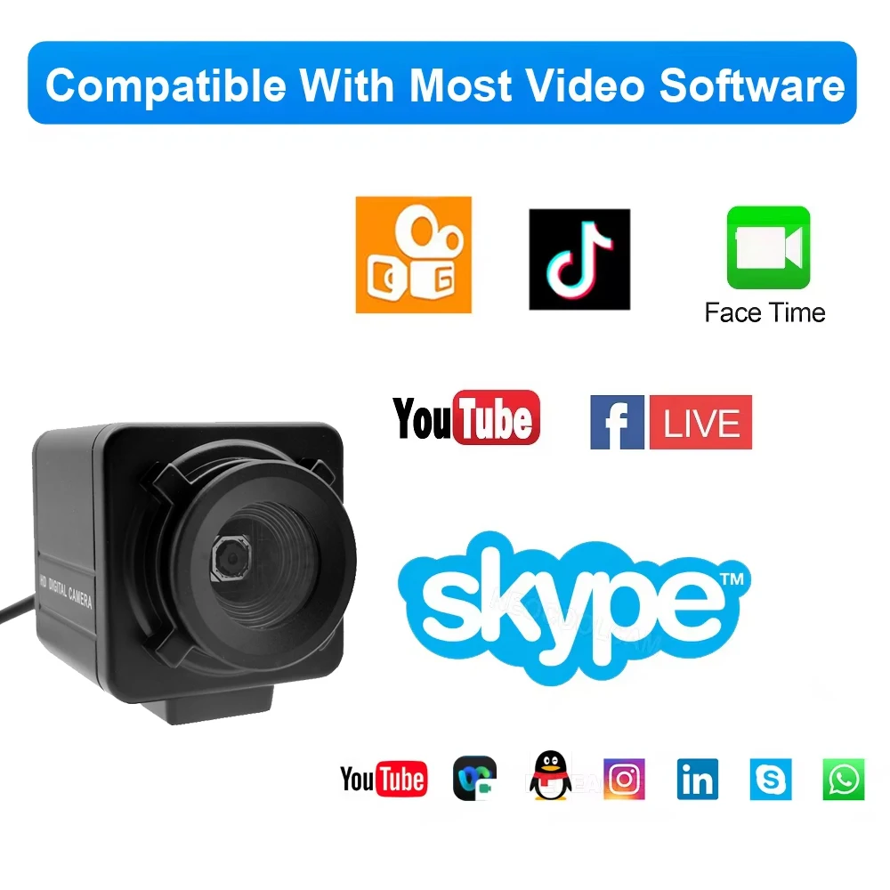 Industrial USB Webcam 12MP IMX362 / 4K IMX179 Autofocus Mini Metal Usb Camera No Distortion Lens For Live Video Teaching Meeting