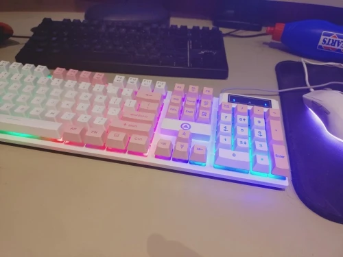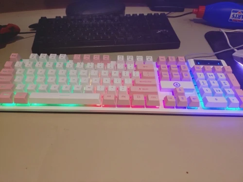 K500 Pink Keyboard Mixed Color White Pink Keycaps 104 Keys Wired Gaming Keyboard for Laptop PC