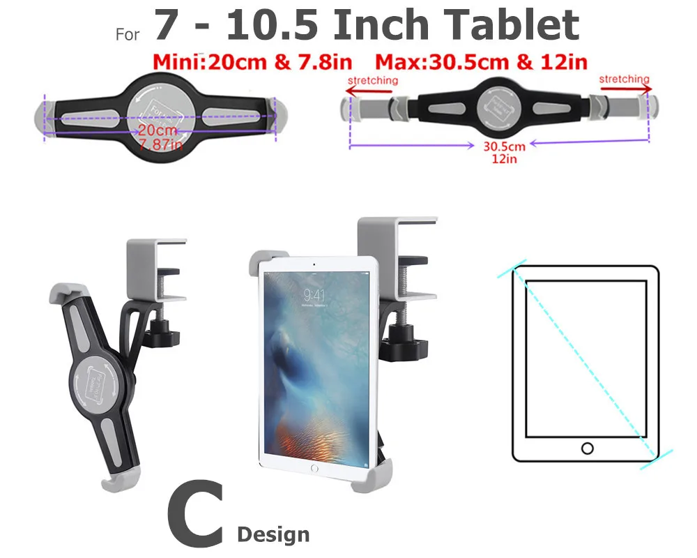 C Design: Fit for 7 to 10.5 Inch Tablet Only