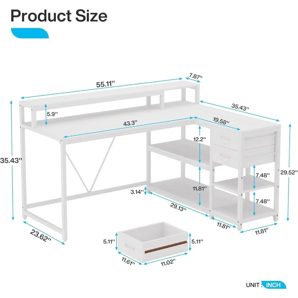 - Versatile Storage Solutions: The desk offers a multipurpose open bookshelf for storing books or documents and two basic drawers for small essentials. This functional storage brings organization to your space and provides quick and convenient access to all work necessities