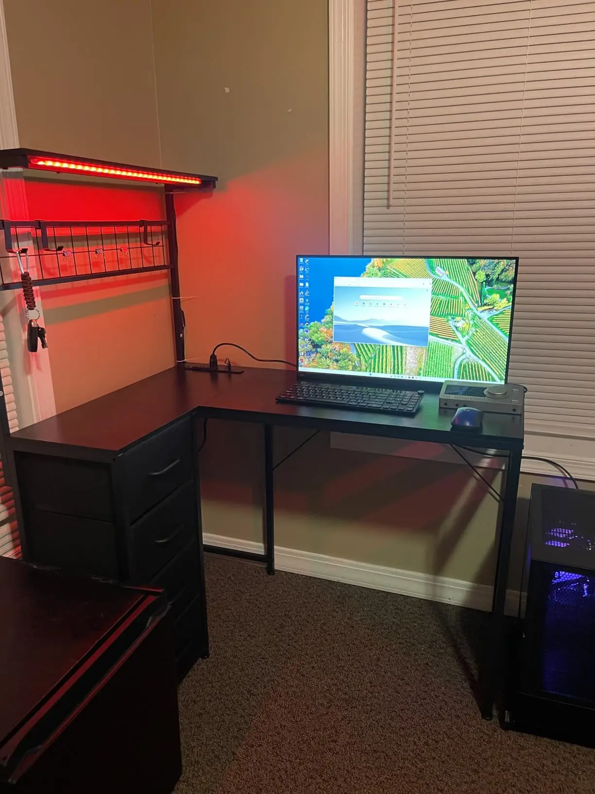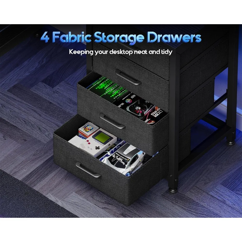 - 【Ample Storage Space】Dimension: 17.7"D x 43"W x 29.8"H. The L-shaped desk provides 4 drawers, grid pegboard, shelf and headphone hook, which gives you super plenty of storage space to store your game items, work files and small office stuffs, make your desktop clean and tidy.