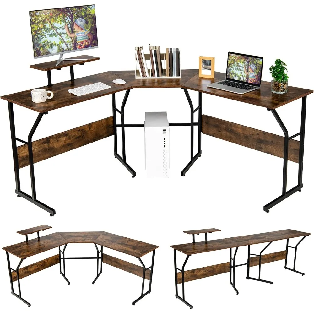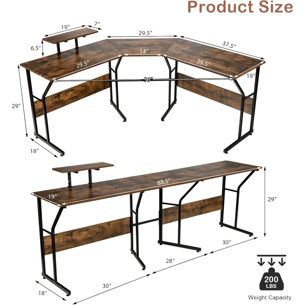- Large Desktop & Adjustable Monitor Stand: The corner desk offers adequate space for 3 monitors, giving you an upgraded enjoyment of working, gaming or reading. Besides, a movable monitor stand is attached to the desk to offer you a comfortable viewing angle. You can anchor it on different side according to your needs.